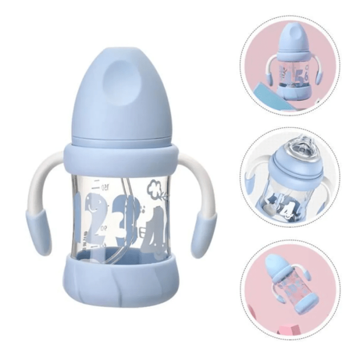 المقبض المزدوج المدمج مناسب للطفل للإمساك بالقش الأوتوماتيكي الذي يمكن أن يجعل الطفل يمتص الحليب بسهولة في أي وضع.