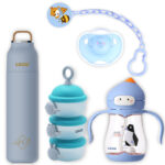 المجموعة تتضمن: 1-زجاجة فرشاة السيليكون: يسمح السيليكون عالي الجودة بأن تكون فرشاة الزجاجة الضيقة متينة للغاية وتدوم طويلاً. فرشاة التنظيف الطويلة لا تمتص الشحوم أو الروائح. فرشاة زجاجات ذات المقبض المريح للغاية وغير المنزلق لن تنزلق حتى في الأيدي الأكثر انزلاقًا والصابون. فرشاة زجاجات المطبخ مصنوعة من مادة خالية من مادة BPA. فرش الزجاجة متينة للغاية وتدوم طويلاً. لن تخدش ولا تمتص الدهون والروائح الكريهة. 2-موزع مسحوق الحليب : يقدم حلاً لإحدى المهام المتكررة التي يواجهها الآباء. قياس مسحوق الحليب الاصطناعي للأطفال بدقة قبل تحضير الرضعة. ستساعدك موزعات مسحوق الحليب سهلة الاستخدام هذه على تقسيم مسحوق الحليب الاصطناعي بشكل صحي مسبقًا سواء في المنزل أو خارجه. تتميز بثلاثة موزعات منفصلة قابلة للإغلاق بشكل فردي والتي يمكن ربطها معًا لتوفير المساحة. يتميز الموزع أيضًا بقمع عملي في الغطاء لضمان سهولة ملء زجاجات الأطفال دون إهدار أي مسحوق حليب صناعي. فهي لا تساعد فقط في جعل تحضير الحليب الاصطناعي أسهل لأفراد الأسرة الذين لم يعتادوا على تحضير حليب الأطفال. كما أنها قابلة للتكيف بشكل فائق؛ لماذا لا تستخدميها لتخزين أجزاء صغيرة من الحبوب أو الفاكهة عندما يكبر طفلك قليلاً. 3-زجاجة الحليب: جسم الزجاجة مصنوع من زجاج البورسليكات الشفاف والمقاوم للحرارة. جسم الزجاجة أملس، وليس من السهل تراكم مقياس الحليب، وسهل التنظيف، وليس من السهل أن ينكسر تحت درجة حرارة عالية مثل صب الماء المغلي. المقبض المزدوج المدمج مناسب للطفل للإمساك بالقش الأوتوماتيكي الذي يمكن أن يجعل الطفل يمتص الحليب بسهولة في أي وضع. قاعدة ناعمة وطوق ناعم يمكن أن يعزز مقاومة تأثير جسم الزجاجة. تصميم حلمة ناعم ومرن بفتحات تهوية يساعد على تقليل المغص والغازات والبصق. السلامة: خالية من مادة BPA