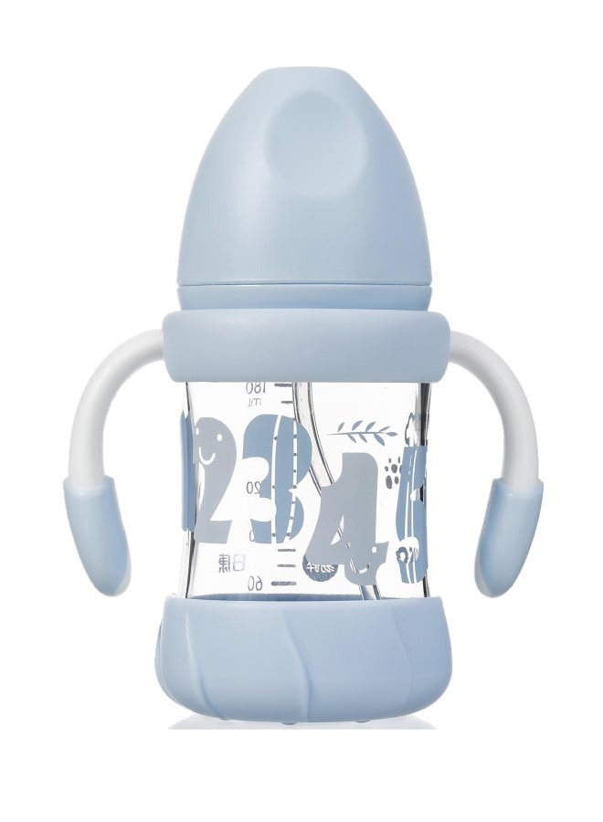 زجاجة رضاعة زجاجية بمقبض من لوكو، 180 مل، لون أزرق