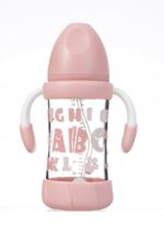 زجاجة رضاعة زجاجية ذات عنق واسع، 120 مل، لون وردي