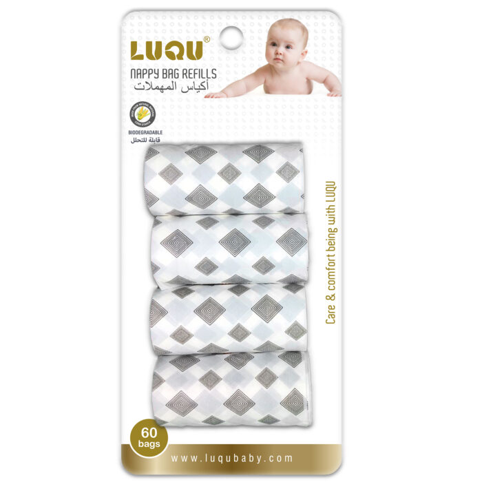 أكياس حفاضات لوكو القابلة للتحلل البيولوجي للاستعمال مرة واحدة، 4 عبوات لإعادة التعبئة باللون الأبيض