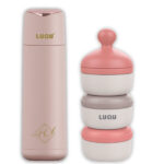 زجاجة معزولة بتفريغ الهواء بجدار مزدوج من لوكو نورسين وموزع مسحوق الحليب الصناعي (وردي)