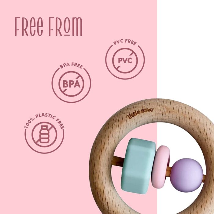 3-كمادة تقليدية، فإن ألعاب التسنين الخشبية والعضاضة المصنوعة من السيليكون الناعمة لا تجذب الغبار.