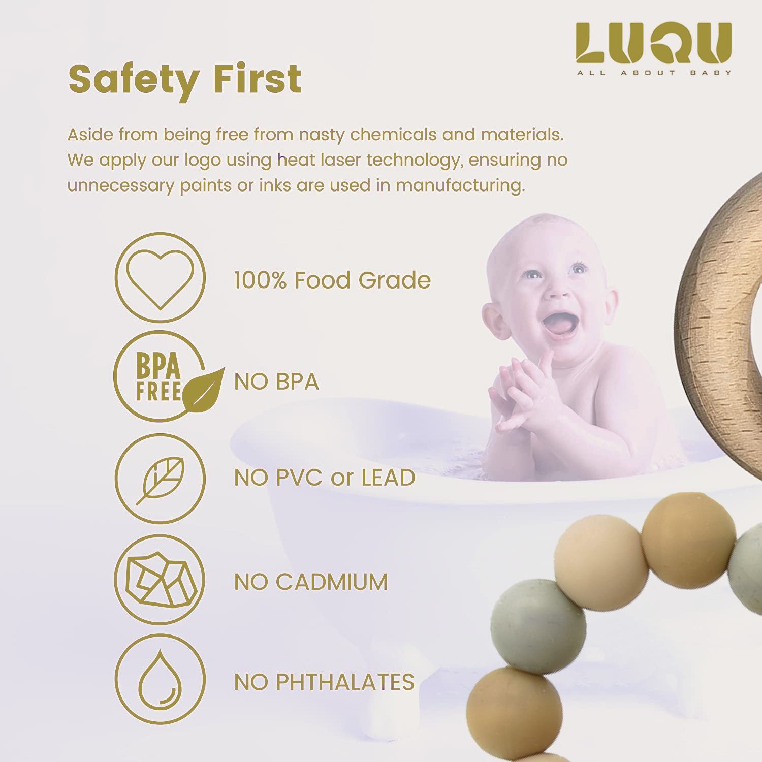 1- حلقة التسنين المصنوعة من السيليكون من لوكو مصنوعة من السيليكون الصالح للطعام، مما يجعلها آمنة للاستخدام كأطفال!