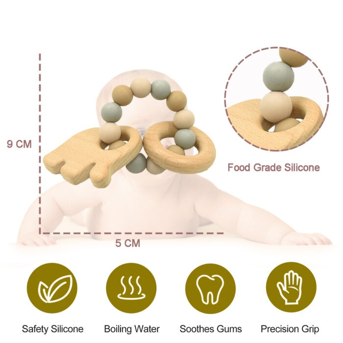 2- خشب عضوي 100% وسيليكون عالي الجودة خالٍ من مادة BPA والكلوريد متعدد الفينيل.