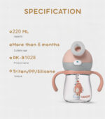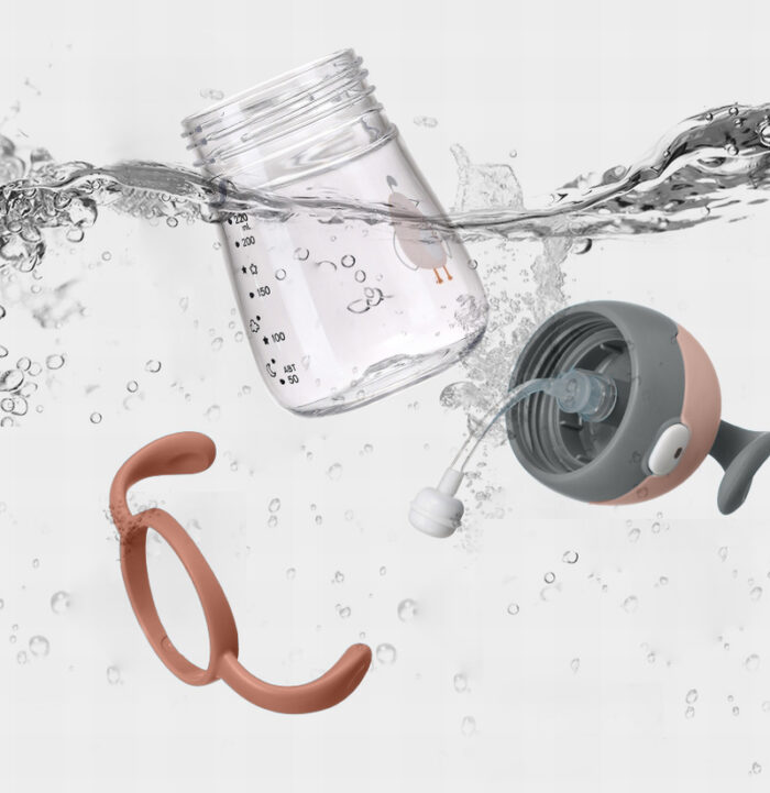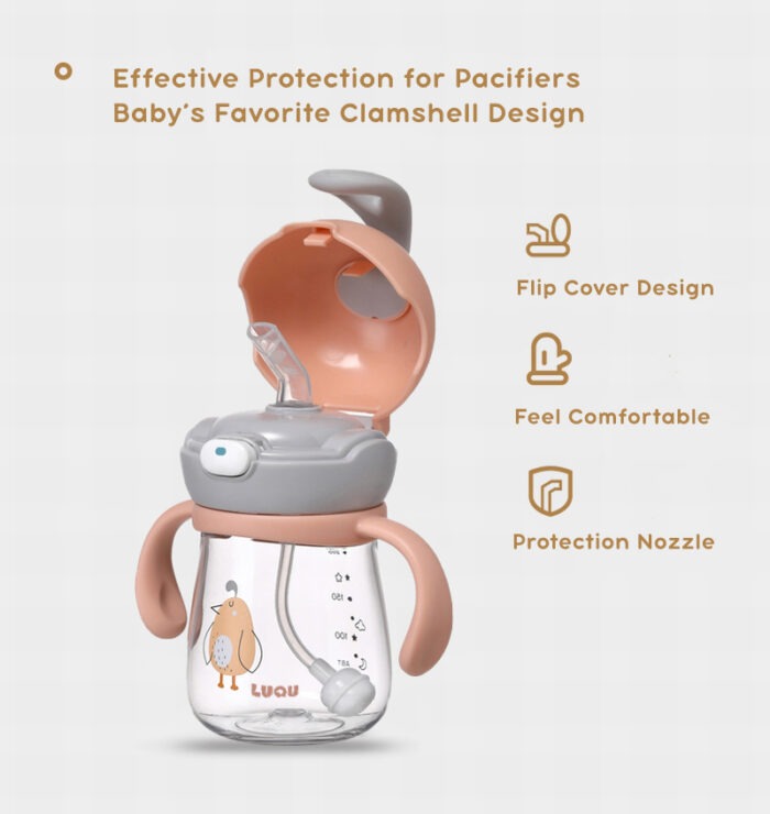 🍼مقياس واضح توجد مؤشرات واضحة للمقياس على ظهر الكوب (مل). يمكننا أن نعرف بوضوح كمية الماء التي شربها الطفل.
