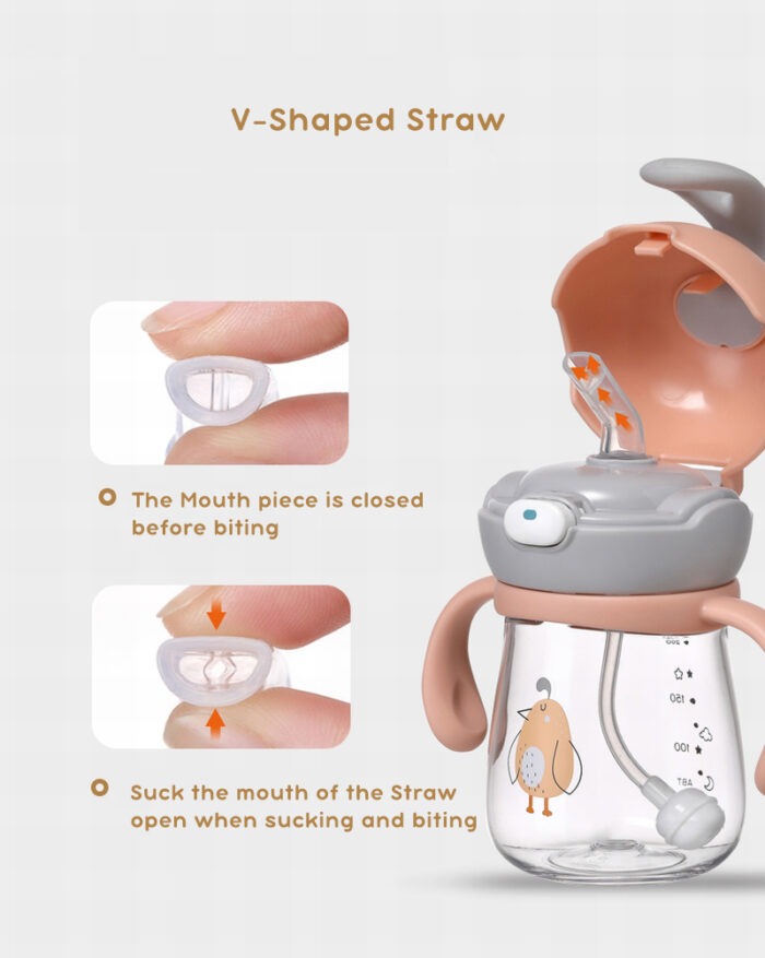 نوع القش مناسب للأطفال الذين تزيد أعمارهم عن 12 شهرًا ومصمم خصيصًا للأطفال في مرحلة الفم، حيث يمكن للأطفال شرب الماء أثناء عض القش. الفوهة ناعمة، وطريقة إخراج المياه مشابهة لطريقة اللهاية، مما يساعد الطفل على الانتقال إلى كوب القش. - 👶أكثر جمالاً: المظهر الجذاب والنمط اللطيف يجعلها الهدية المثالية لطفلك المحبوب وسوف ينجذب طفلك إلى كوب الشرب ذو القش الخاص بنا للحصول على مظهر فريد. هناك أيضًا أنماط حيوانات مختلفة على غطاء الزجاجة، والتي يمكن تغييرها بتدوير المقبض. إنها طريقة لطيفة ليتعلم الطفل أن يشعر بالعالم.